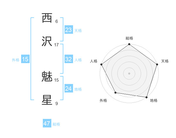 西沢 魅星さんの総格は47画の5点!