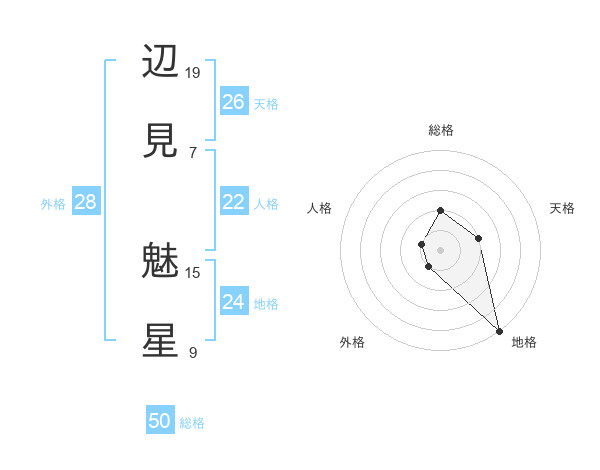 辺見 魅星さんの総格は50画の2点!