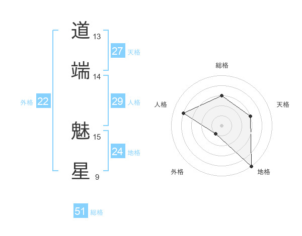 道端 魅星さんの総格は51画の3点!