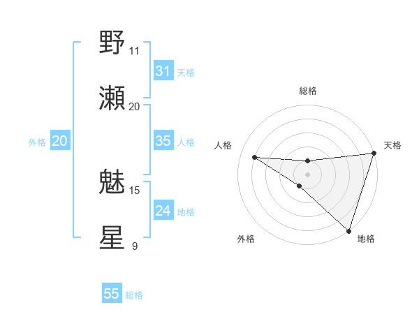 野瀬 魅星さんの天格は31画の5点!