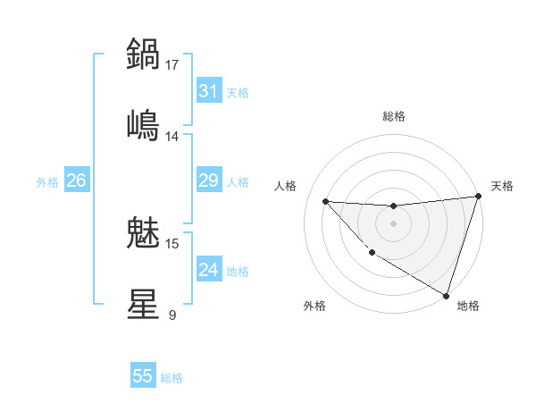 鍋嶋 魅星さんの総格は55画の1点!