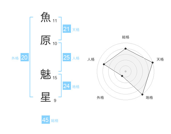 魚原 魅星さんの総格は45画の4点!