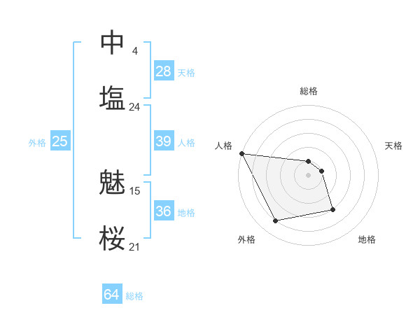 中塩 魅桜さんを姓名の画数から五運を鑑定