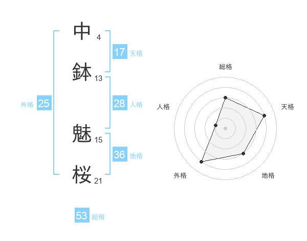 中鉢 魅桜さんの総格は53画の3点!