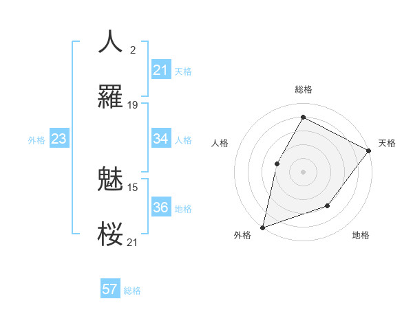 人羅 魅桜さんを姓名の画数から五運を鑑定