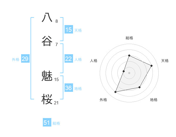 八谷 魅桜さんを姓名の画数から五運を鑑定
