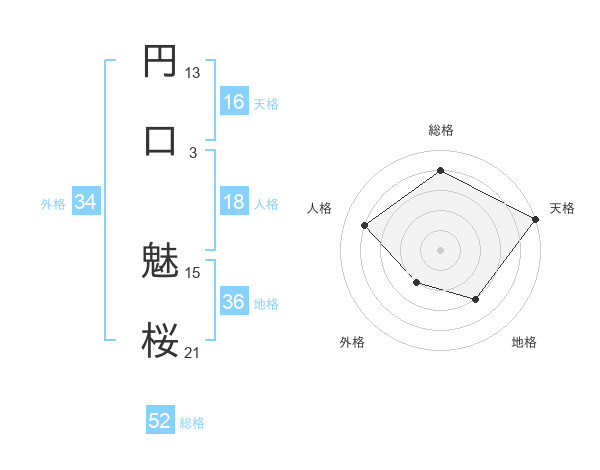 円口 魅桜さんの総格は52画の4点!