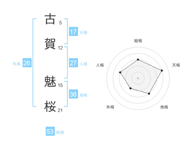 古賀 魅桜さんの総格は53画の3点!