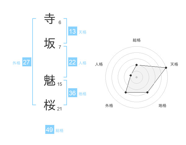寺坂 魅桜さんの天格は13画の5点!