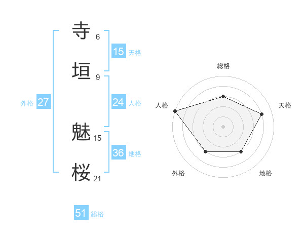 寺垣 魅桜さんの総格は51画の3点!
