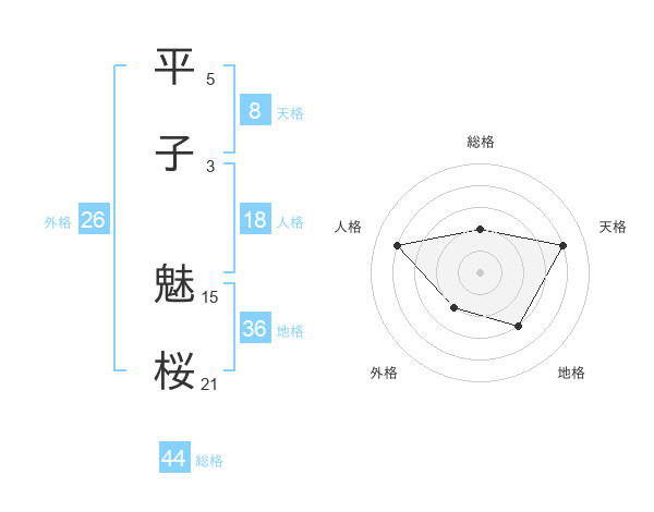 平子 魅桜さんの天格は8画の4点!