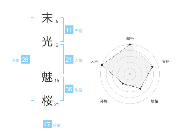 末光 魅桜さんの総格は47画の5点!