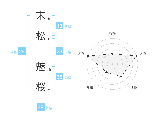 末松 魅桜さんの天格は13画の5点!