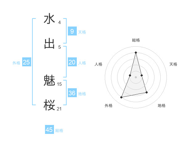 水出 魅桜さんの総格は45画の4点!