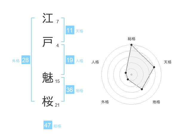 江戸 魅桜さんの総格は47画の5点!