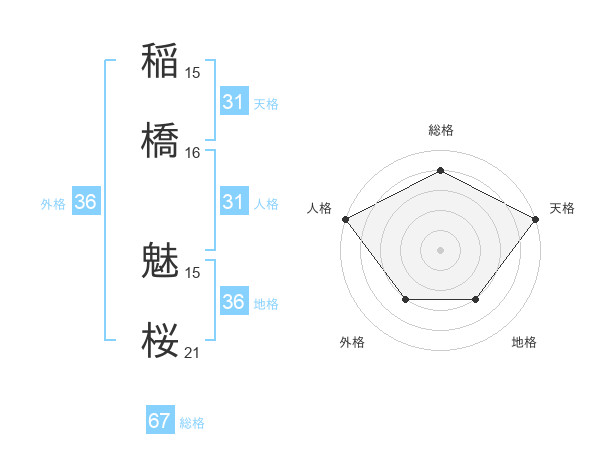 稲橋 魅桜さんを姓名の画数から五運を鑑定