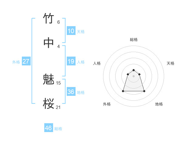 竹中 魅桜さんを姓名の画数から五運を鑑定