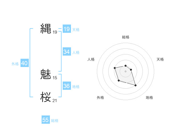 縄 魅桜さんを姓名の画数から五運を鑑定