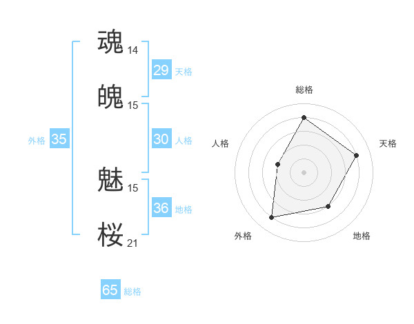 魂魄 魅桜さんを姓名の画数から五運を鑑定