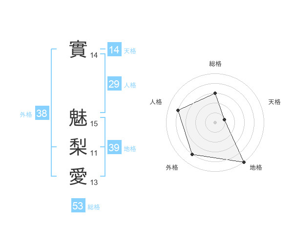 實 魅梨愛さんの総格は53画の3点!