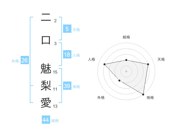 二口 魅梨愛さんの地格は39画の5点!