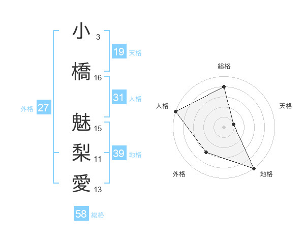 小橋 魅梨愛さんの外格は27画の3点!