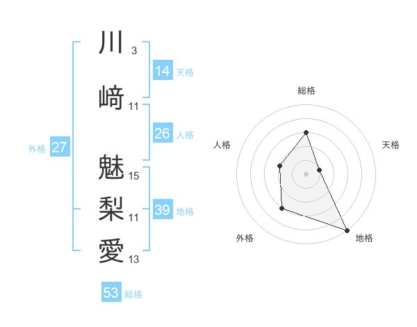 川﨑 魅梨愛さんを姓名の画数から五運を鑑定