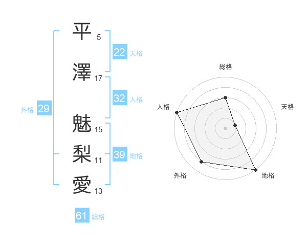 平澤 魅梨愛さんの総格は61画の3点!