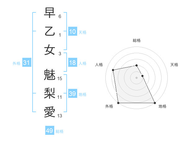 早乙女 魅梨愛さんを姓名の画数から五運を鑑定
