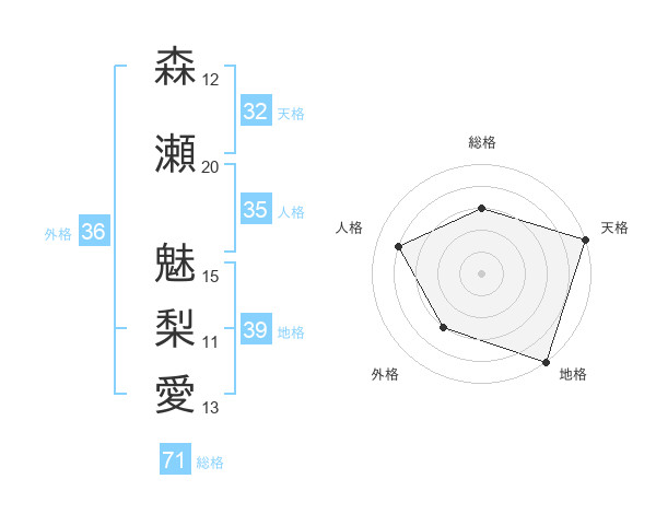 森瀬 魅梨愛さんの総格は71画の3点!