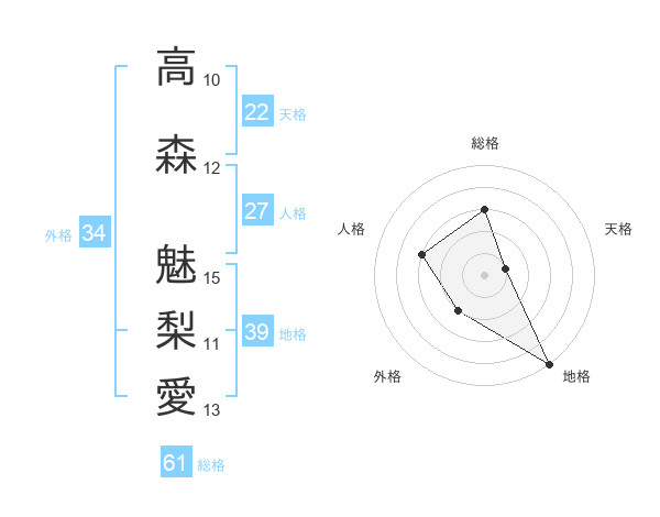 高森 魅梨愛さんを姓名の画数から五運を鑑定