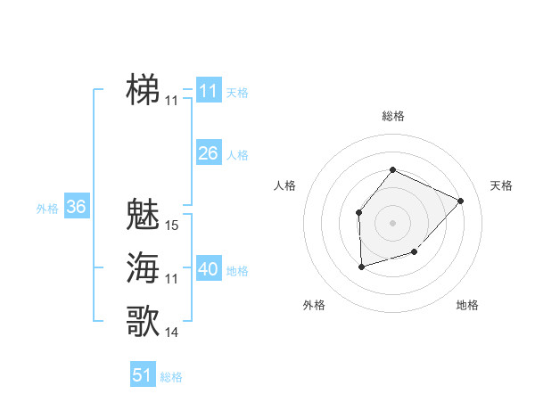 梯 魅海歌さんの総格は51画の3点!