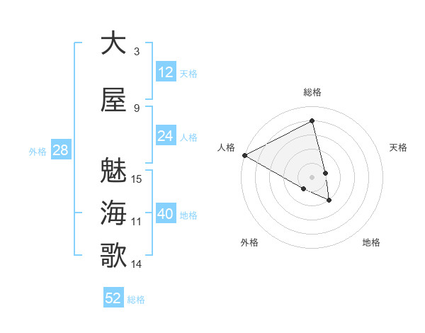 大屋 魅海歌さんを姓名の画数から五運を鑑定
