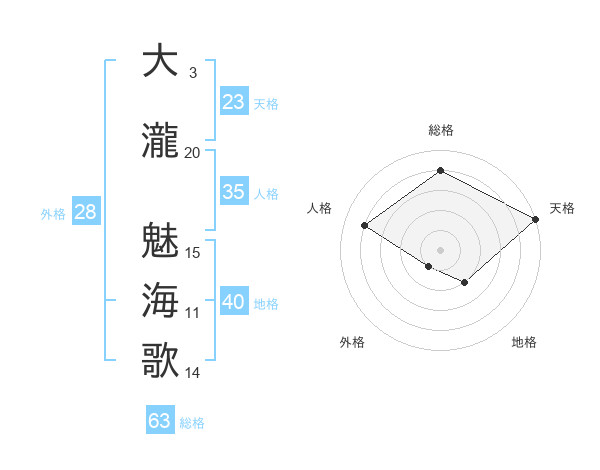 大瀧 魅海歌さんを姓名の画数から五運を鑑定