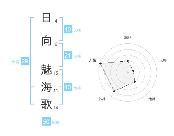 日向 魅海歌さんの総格は50画の2点!