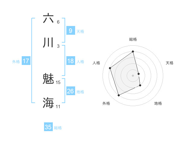 六川 魅海さんの総格は35画の4点!