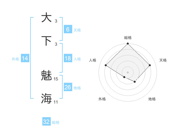 大下 魅海さんの総格は32画の5点!