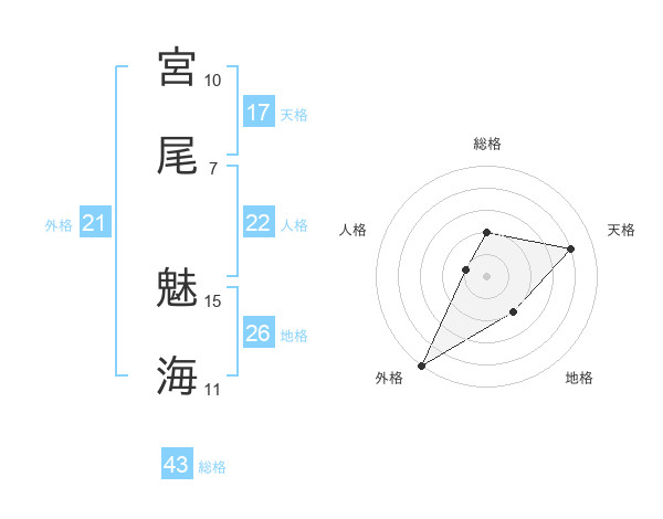 宮尾 魅海さんの外格は21画の5点!