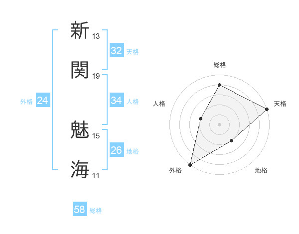 新関 魅海さんの総格は58画の4点!