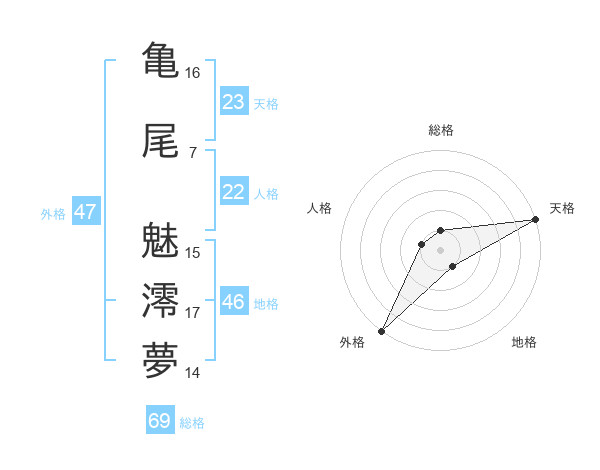 亀尾 魅澪夢さんの外格は47画の5点!
