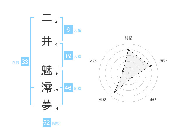 二井 魅澪夢さんの天格は6画の4点!