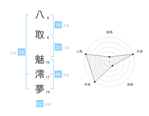 八取 魅澪夢さんの天格は16画の5点!