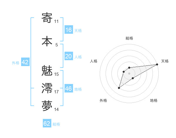寄本 魅澪夢さんを姓名の画数から五運を鑑定