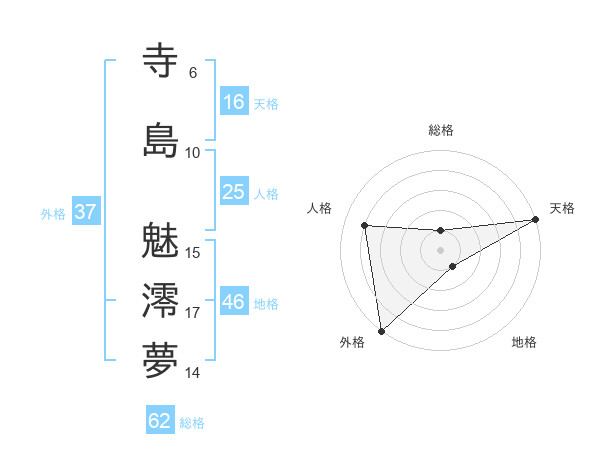 寺島 魅澪夢さんの外格は37画の5点!