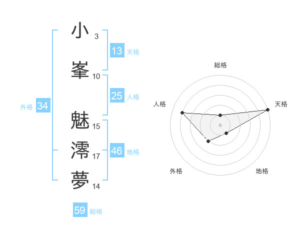 小峯 魅澪夢さんを姓名の画数から五運を鑑定