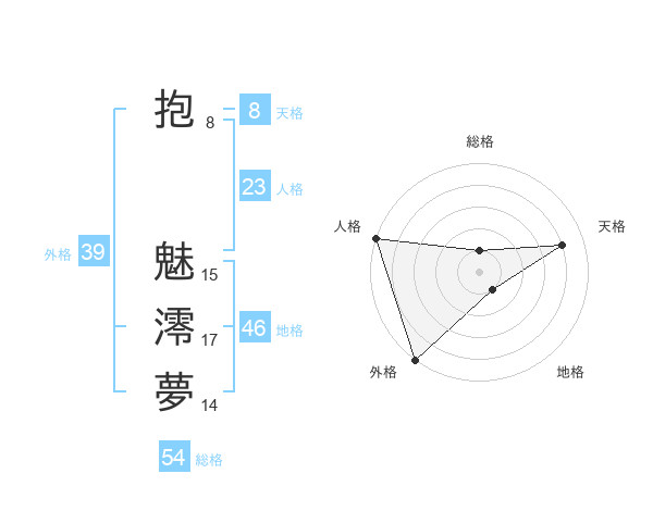 抱 魅澪夢さんの外格は39画の5点!