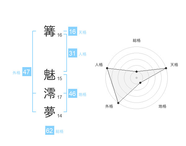 篝 魅澪夢さんを姓名の画数から五運を鑑定