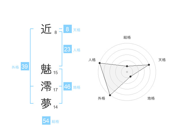 近 魅澪夢さんを姓名の画数から五運を鑑定