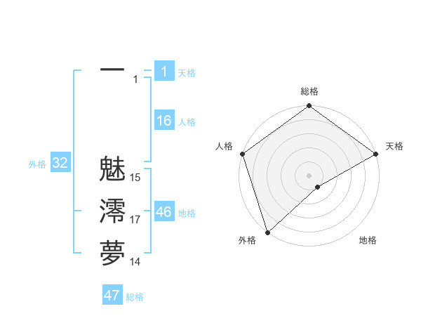 一 魅澪夢さんの外格は32画の5点!