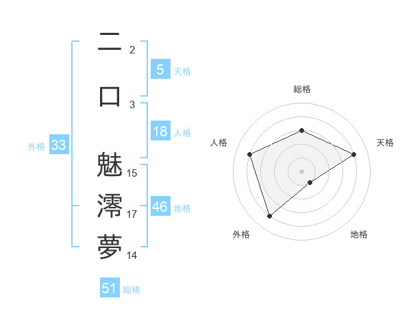 二口 魅澪夢さんの総格は51画の3点!
